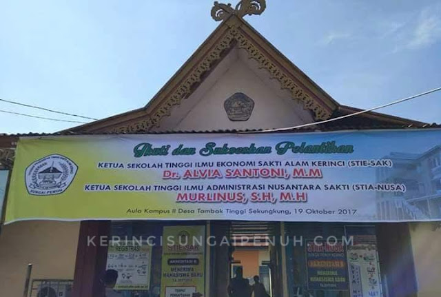 Kerincisungaipenuh.com, Kerinci – Yayasan Pendidikan Tinggi Sakti Alam Kerinci (YPTSA) rencana pagi ini (kamis, 19/10) akan melantik Ketua STIE-SAK dan Ketua STIA-NUSA periode 2017-2022.